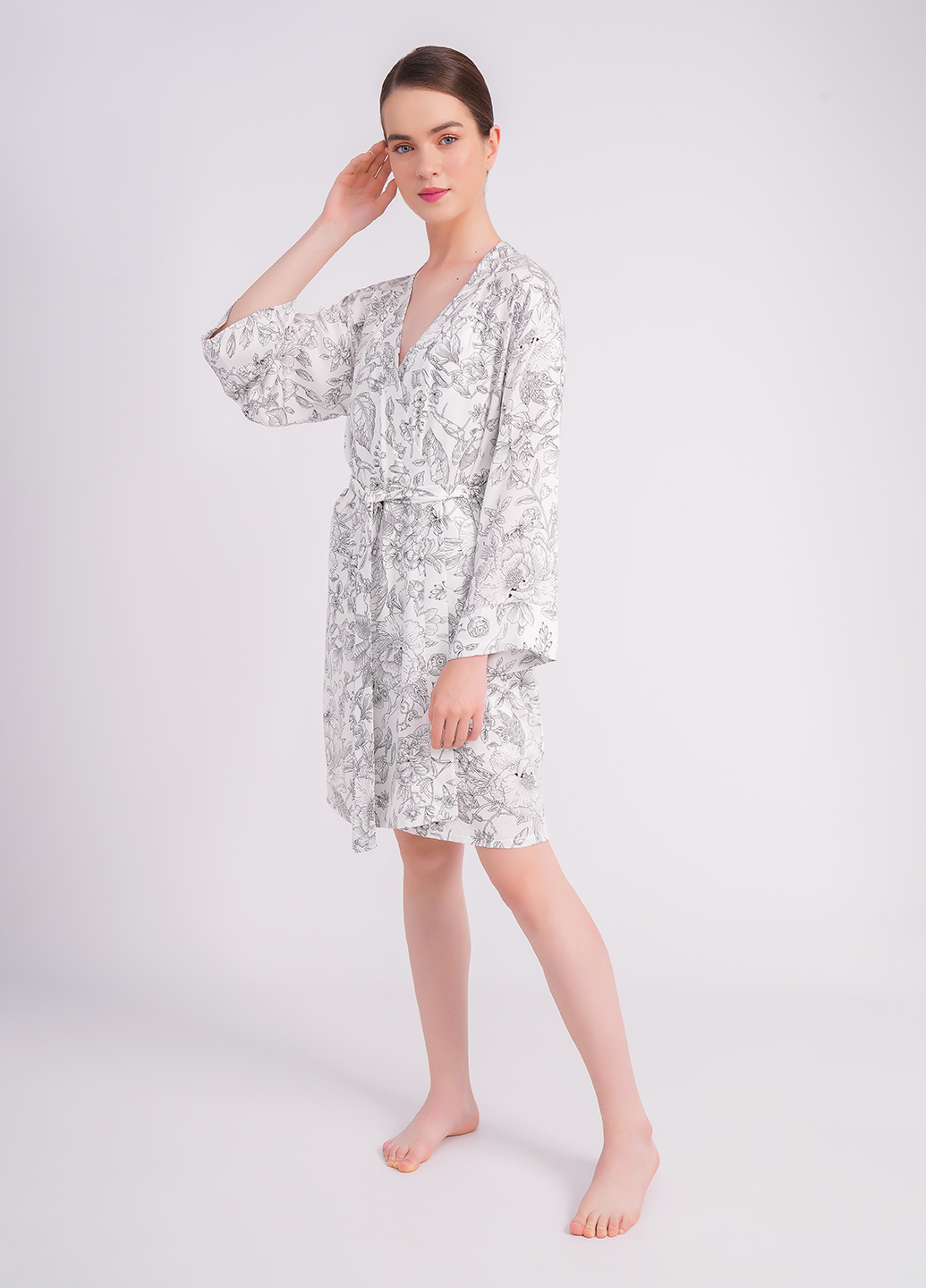 Beginnen Sie Ihren Morgen mit einem Gefühl von Zartheit und Komfort im eleganten Morgenmantel aus der Kollektion FLOSSED IN FLOWERS 7336/040.
