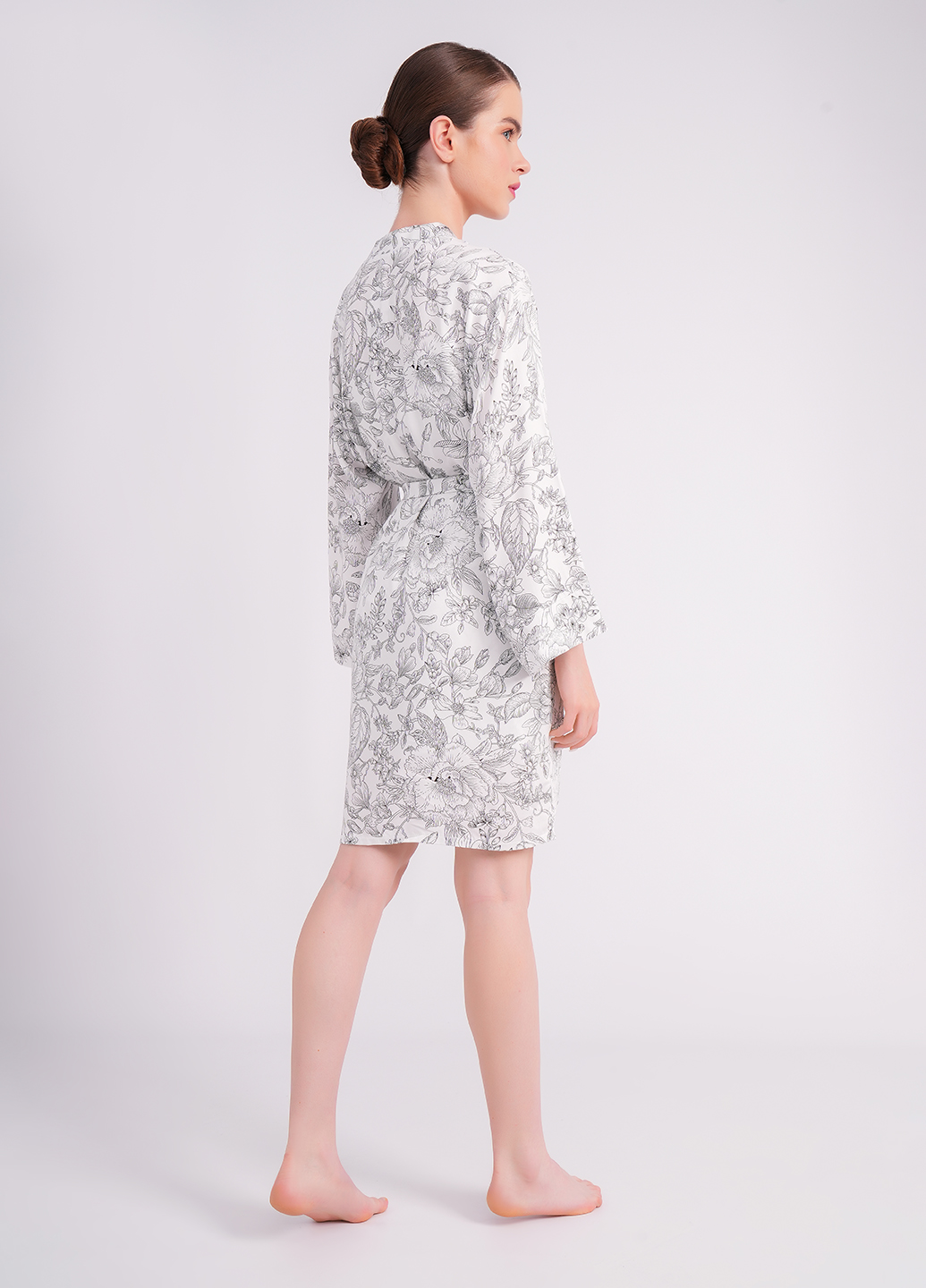 Damen-Morgenmantel aus Viskose mit Blumenmuster – FLOSSED IN FLOWERS 7336/040 (white/black floral print)