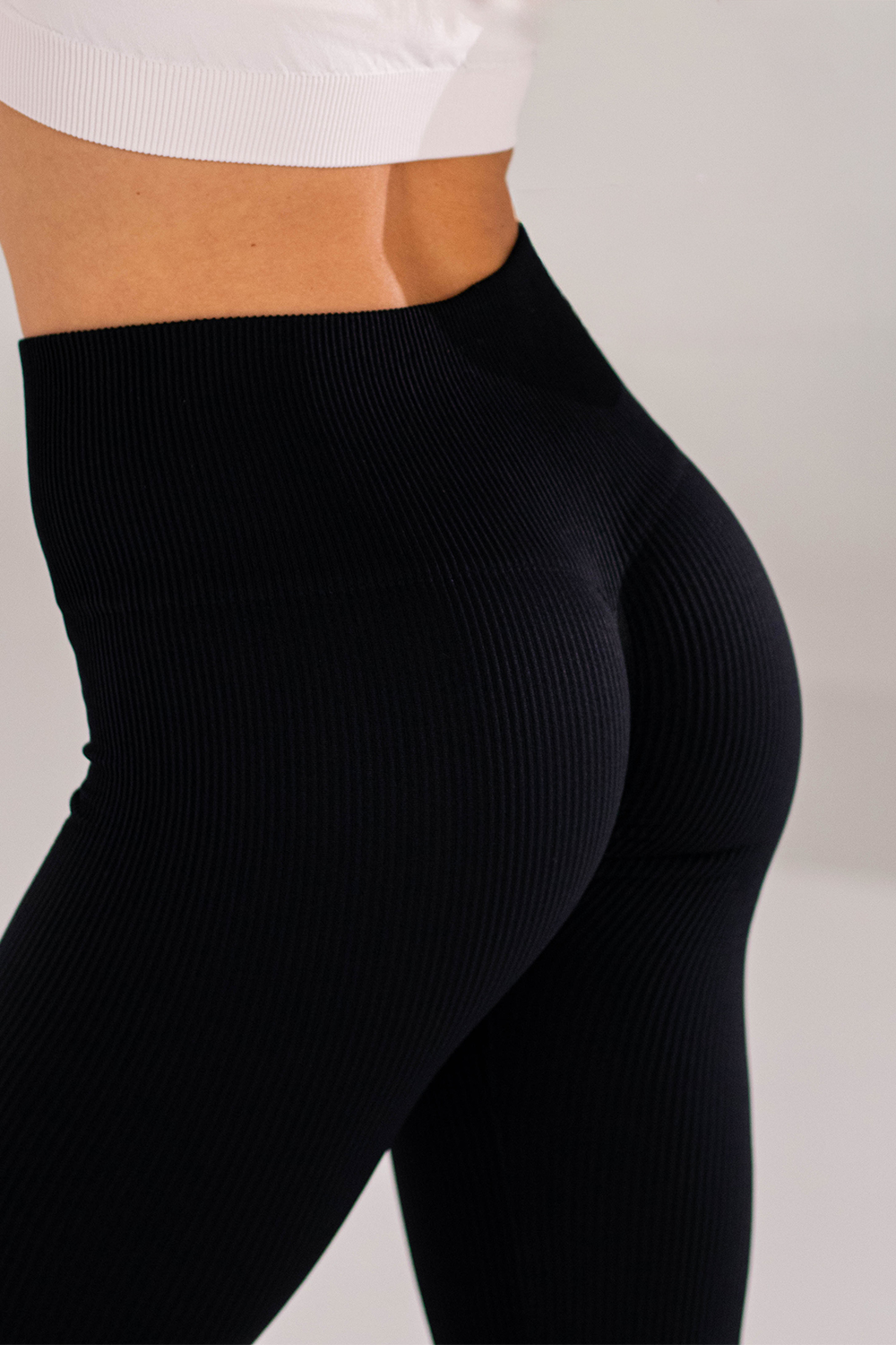 The trendy ribbed fabric adds visual volume and uniqueness, beautifully highlighting the glutes and thighs.
