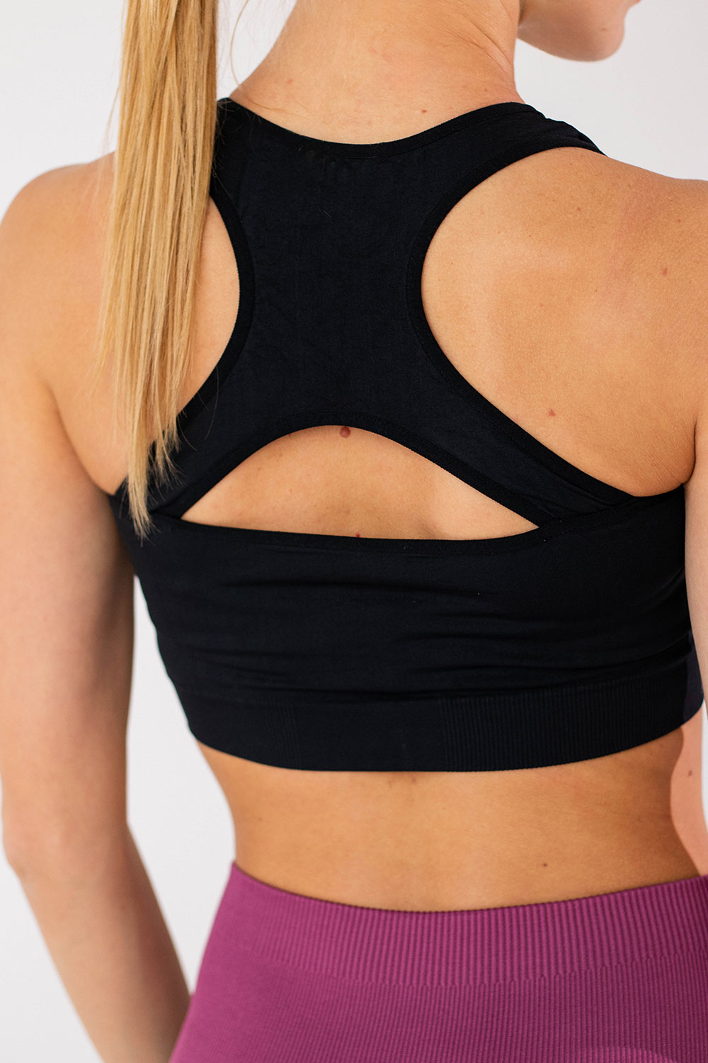A wide elastic underbust band and dense yet breathable fabric provide medium support, making it ideal for fitness, dancing, yoga, or stretching.