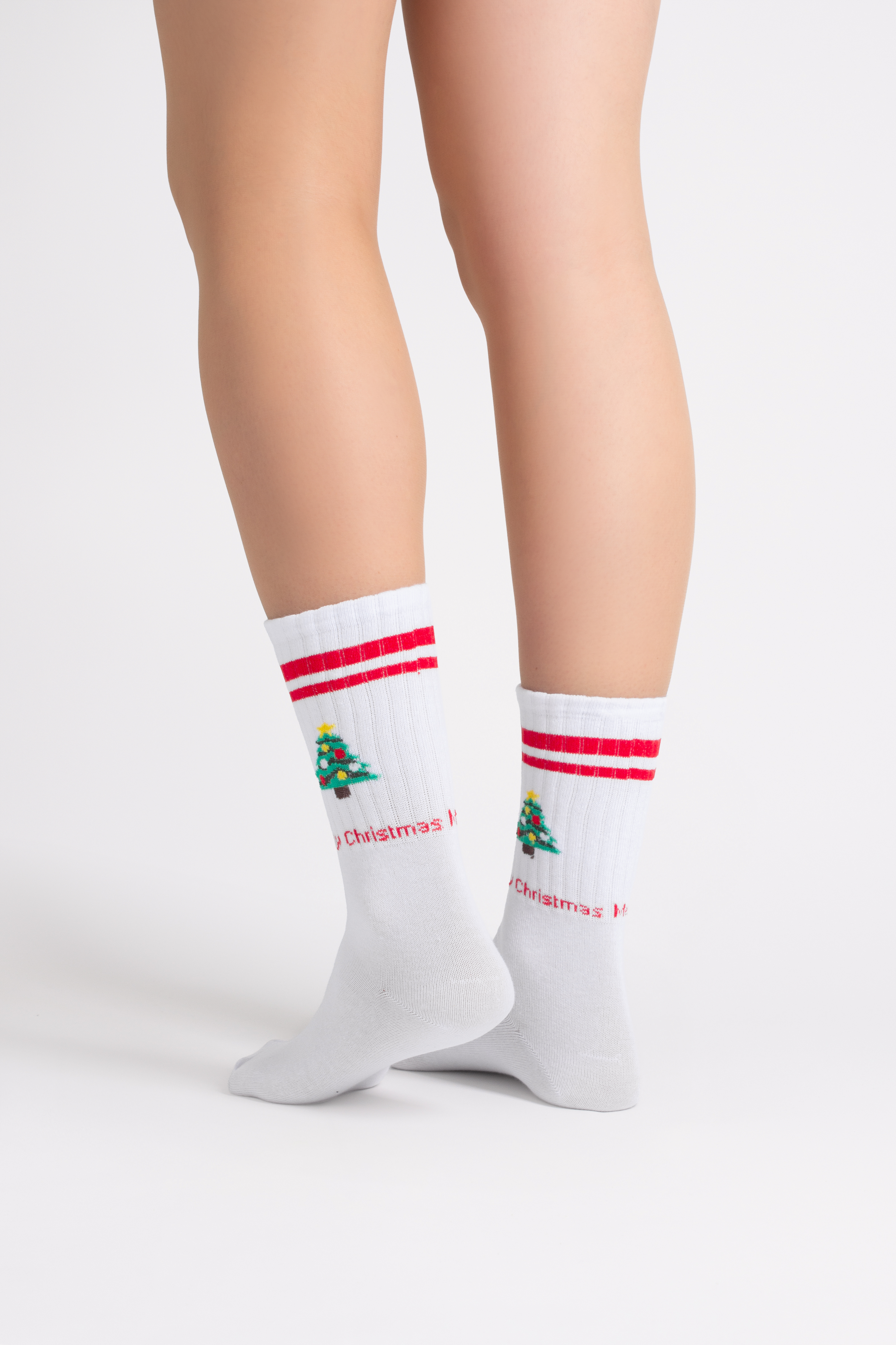 Ribbed Christmas Socks WS4 NEW YEAR STRONG 2602 white/red