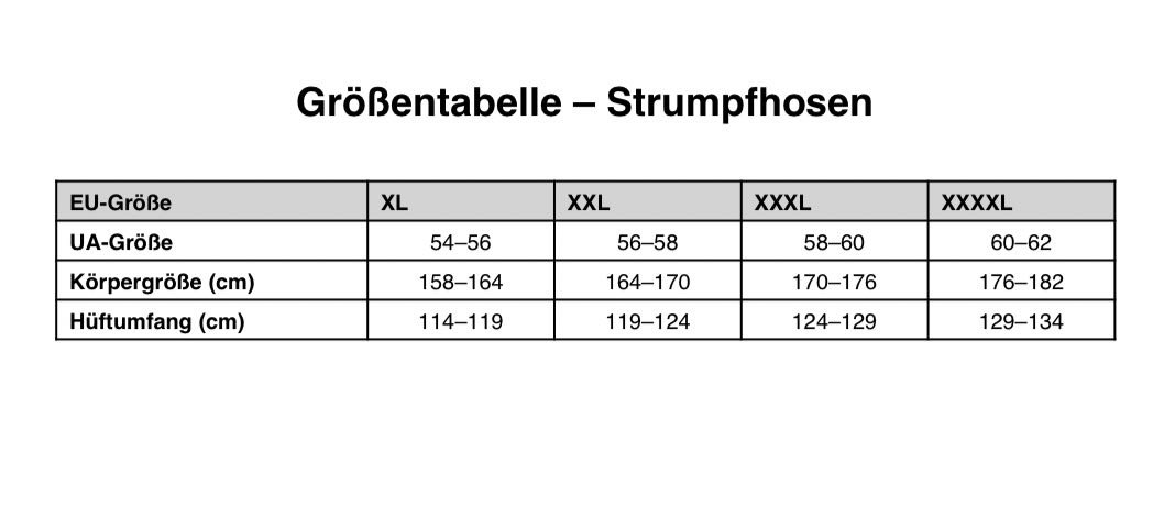 Größentabelle