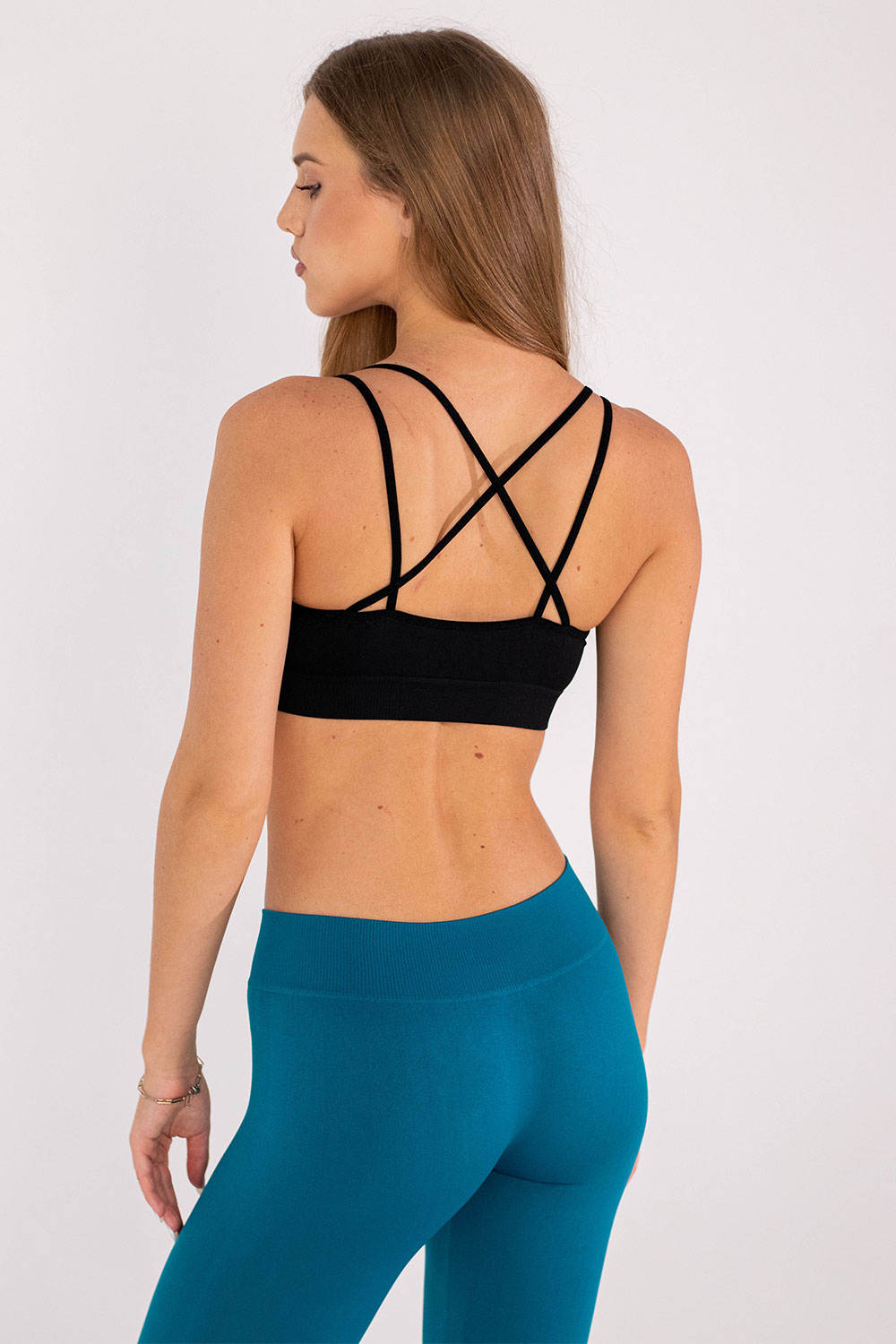 Die überkreuzten Träger am Rücken verteilen die Belastung gleichmäßig und sorgen auch bei Sprüngen für hohen Tragekomfort.