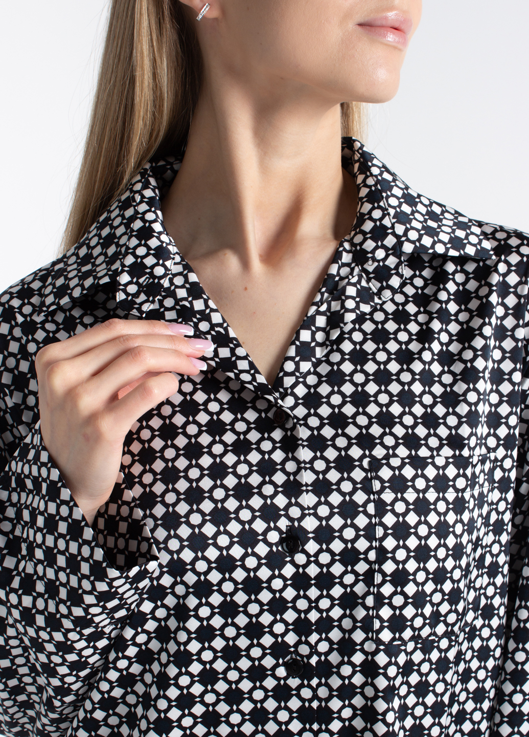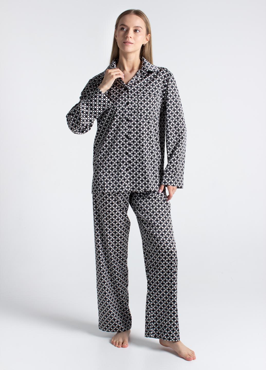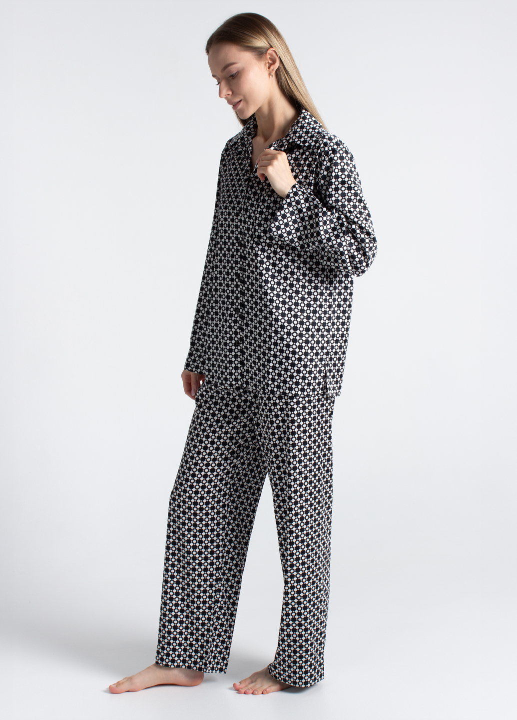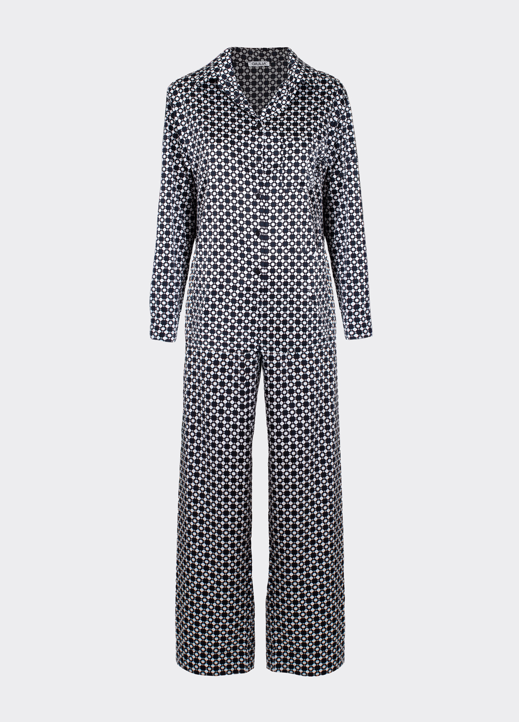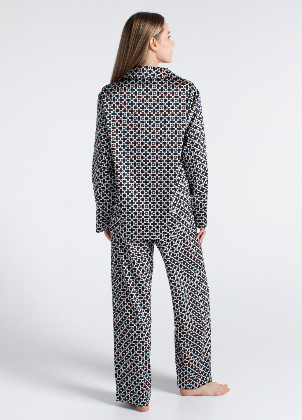 Seidenpyjama NOIRE 5903/050 white/twilight teal rhomb (weiß/schwarz)
