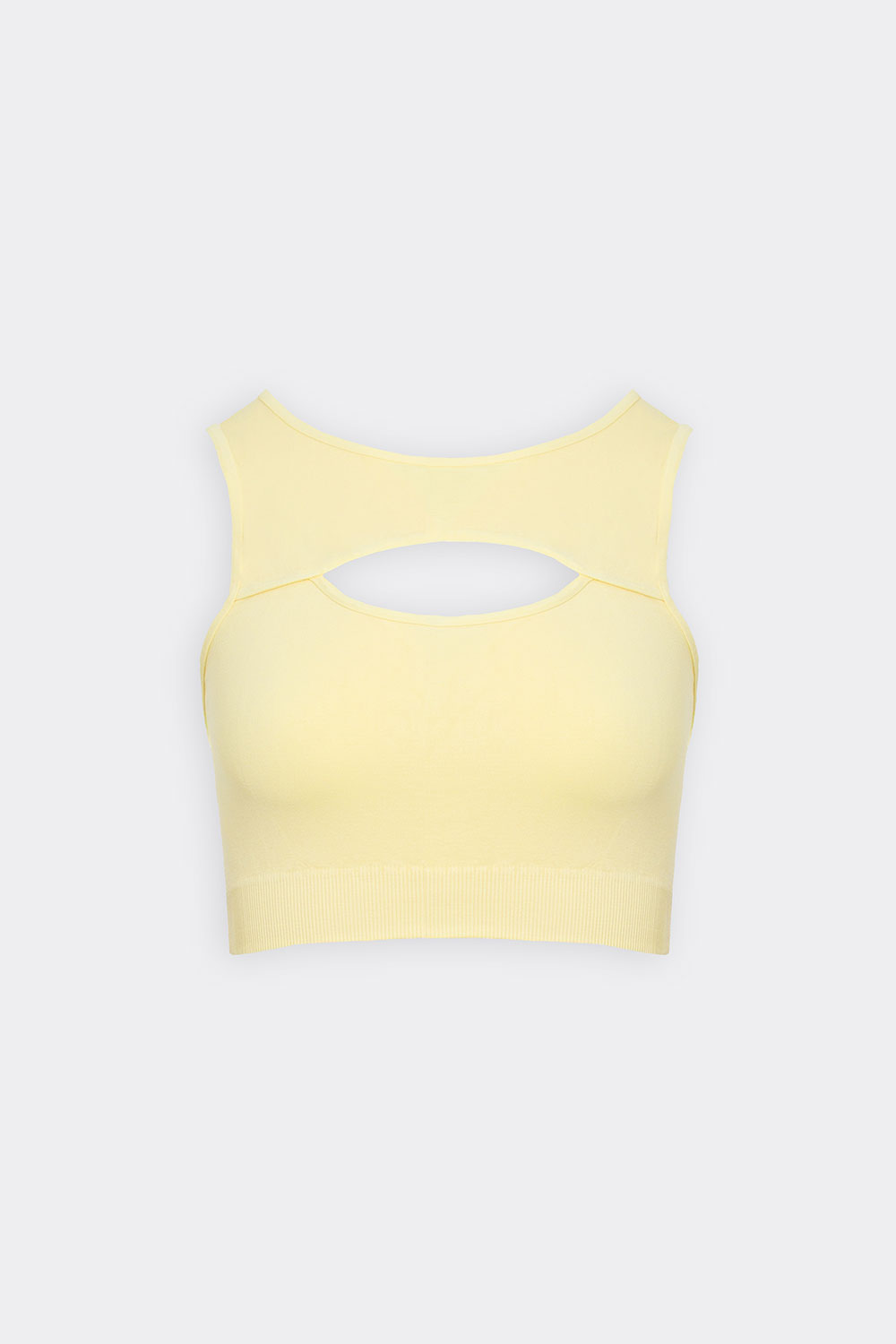 Der originelle Cut-out-Ausschnitt im Brustbereich und der figurbetonte Racerback mit zusätzlichem Ausschnitt verleihen dem Top einen dynamischen und modernen Look für den Alltag.